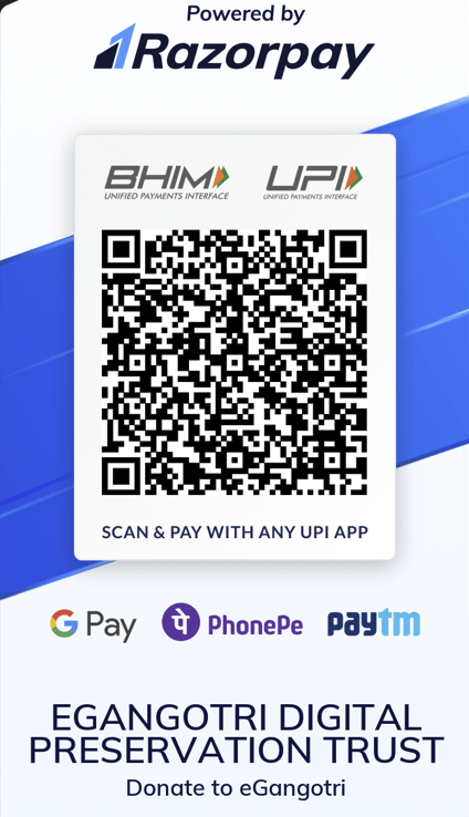 Donate to eGangotri via Razorpay On August 24, 2018March 9, 2026 By eGangotri Digital Preservation TrustIn eGangotri https://razorpay.me/@egangotri Share this: Share on X (Opens in new window) X Share on Facebook (Opens in new window) Facebook Email a link to a friend (Opens in new window) Email Share on Pinterest (Opens in new window) Pinterest Like Loading... Related